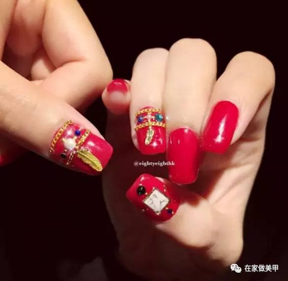 五、红色美甲,时尚必备